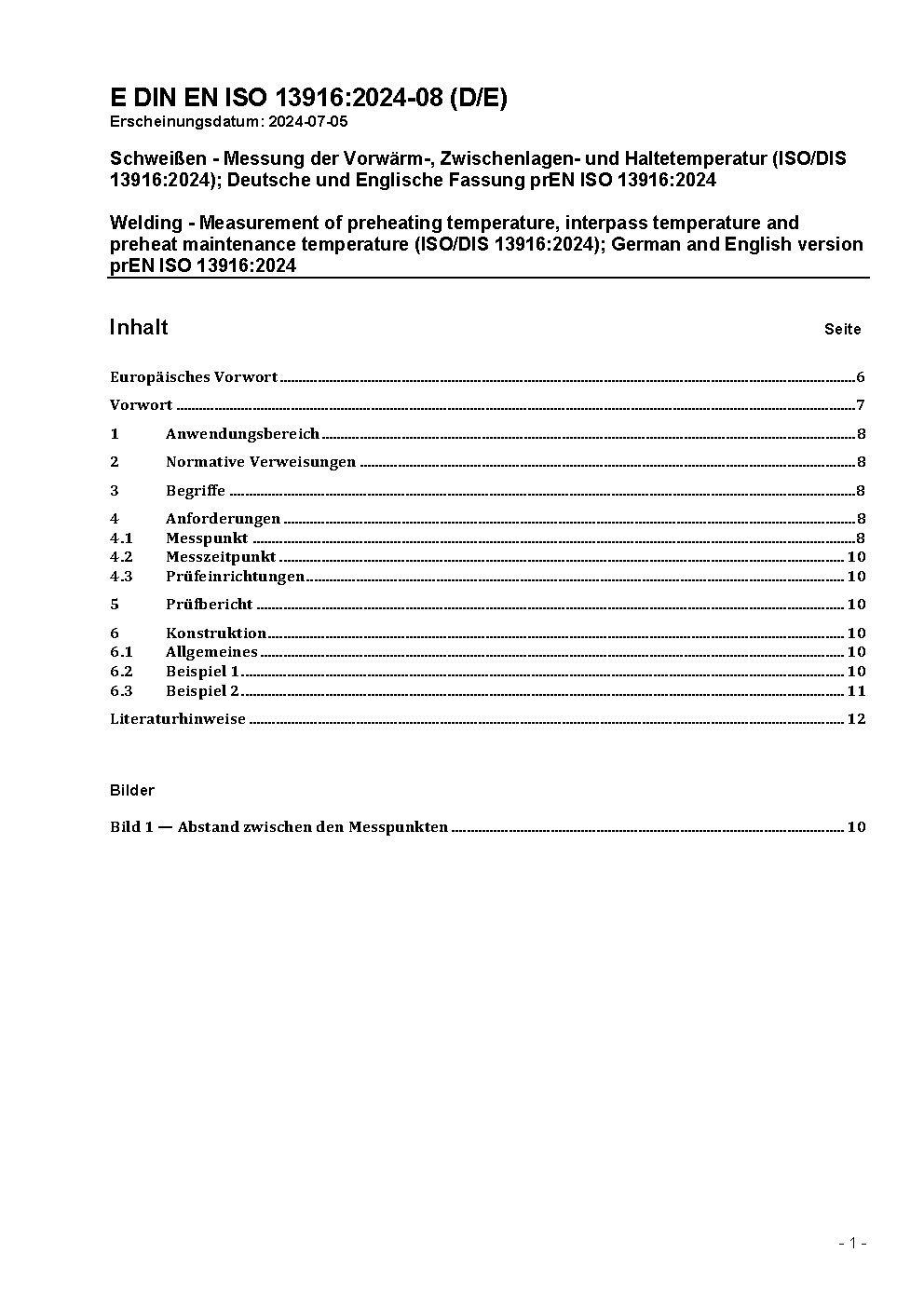 Welding - Measurement of preheating temperature, interpass temperature and preheat maintenance temperature (ISO 13916:2025); German version EN ISO 13916:2025