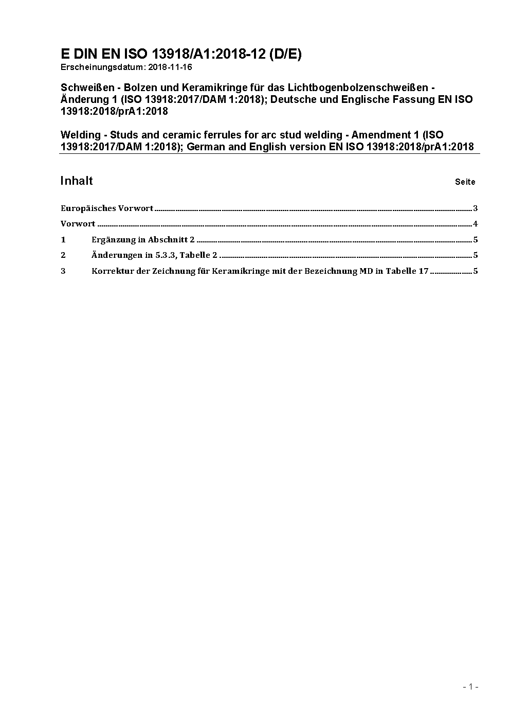 Welding - Studs and ceramic ferrules for arc stud welding (ISO 13918:2008); German version EN ISO 13918:2008