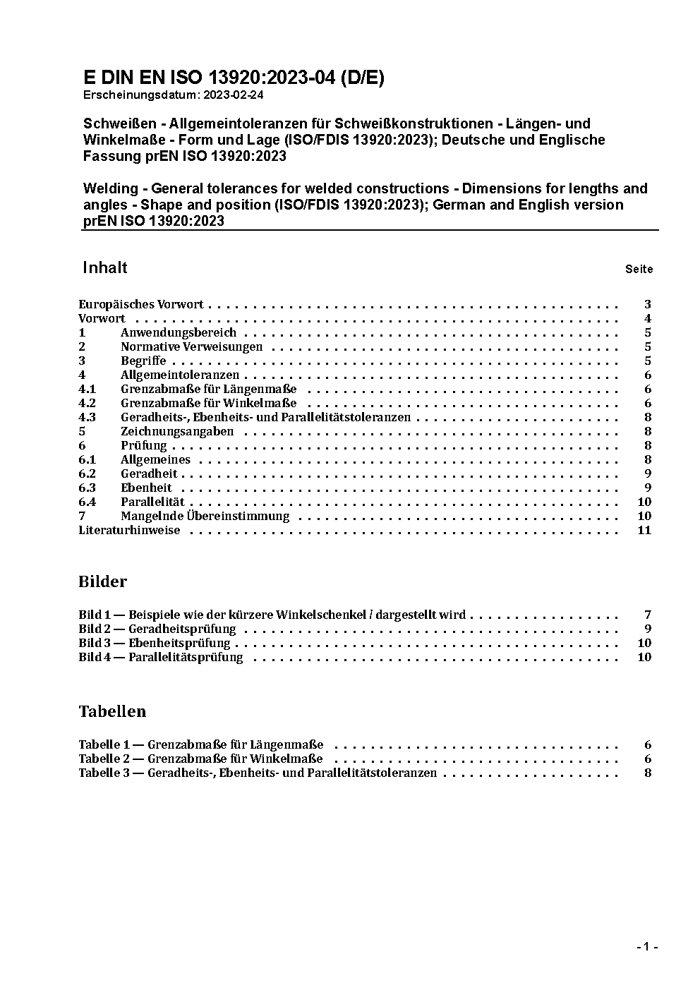 Schweißen - Allgemeintoleranzen für Schweißkonstruktionen - Längen- und Winkelmaße - Form und Lage (ISO/FDIS 13920:2023); Deutsche und Englische Fassung prEN ISO 13920:2023