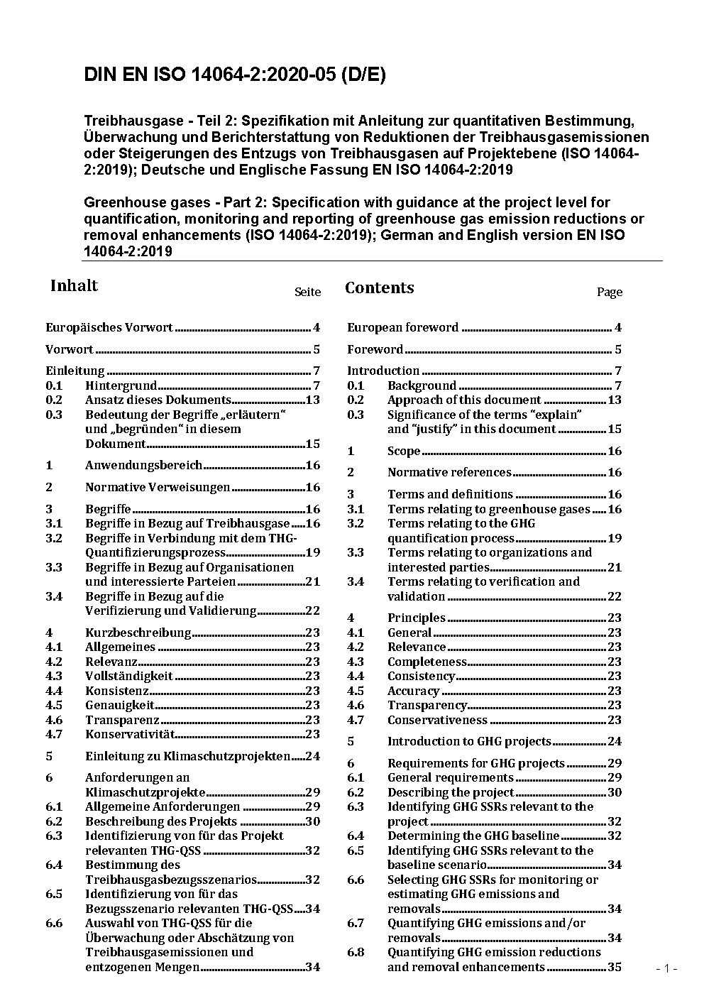 Greenhouse gases - Part 2: Specification with guidance at the project level for quantification, monitoring and reporting of greenhouse gas emission reductions or removal enhancements (ISO 14064-2:2006); German and English version EN ISO 14064-2:2012