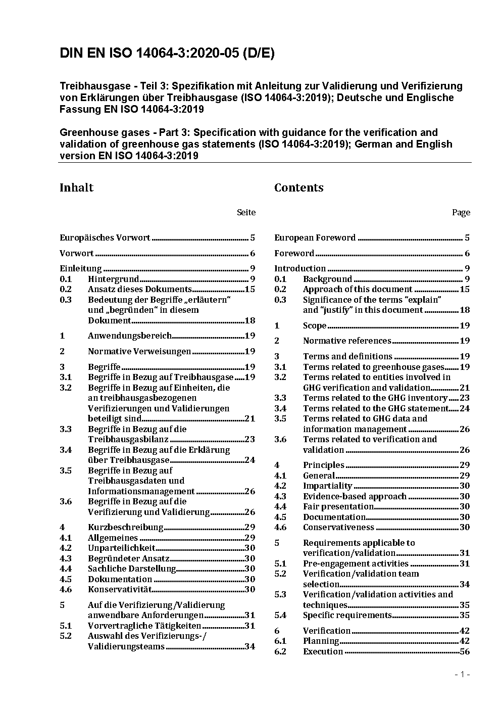 Greenhouse gases - Part 3: Specification with guidance for the validation and verification of greenhouse gas assertions (ISO 14064-3:2006); German and English version EN ISO 14064-3:2012
