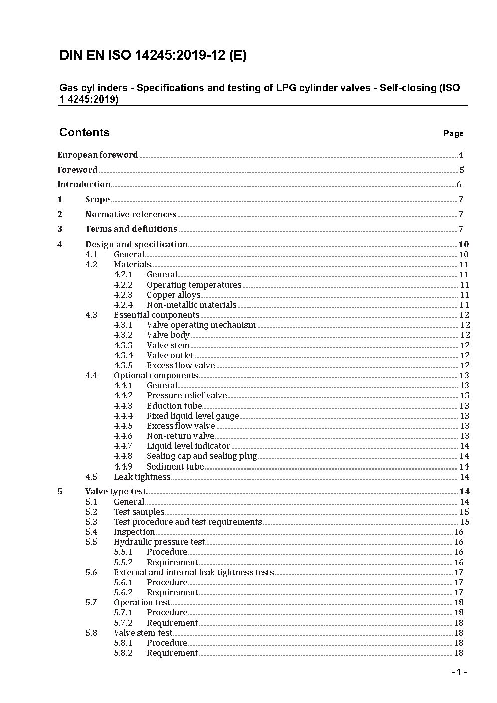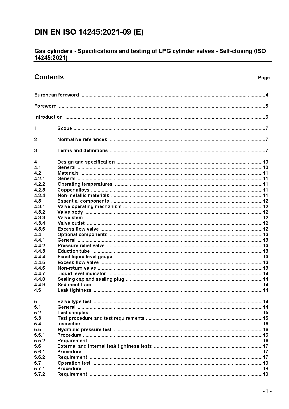 Gas cylinders - Specifications and testing of LPG cylinder valves - Self-closing (ISO 14245:2006); German version FprEN ISO 14245:2009