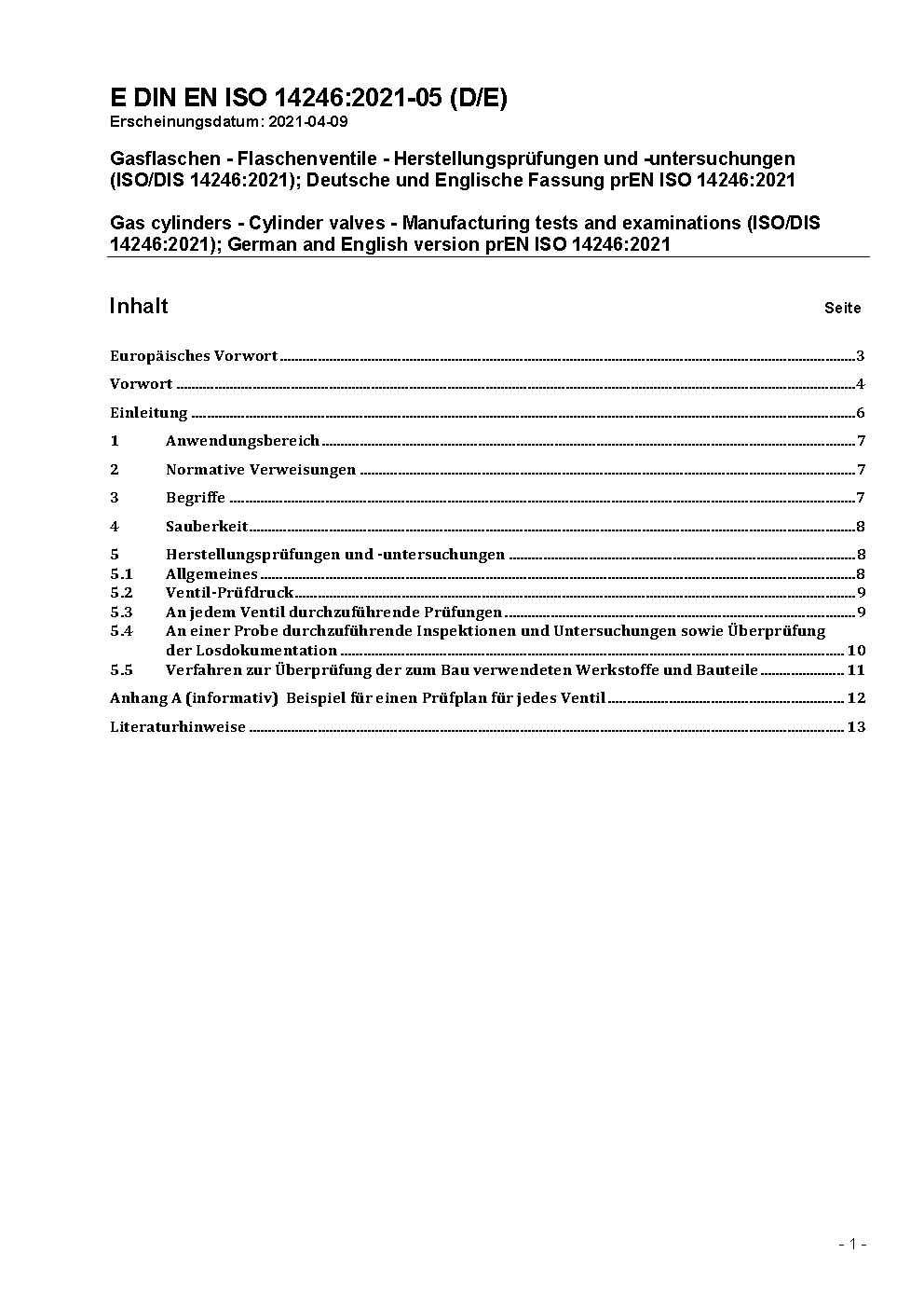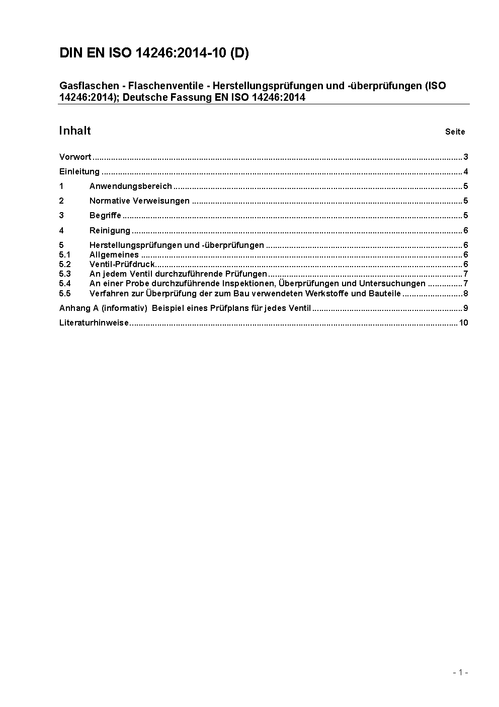 Ortsbewegliche Gasflaschen - Gasflaschen-Ventile - Herstellungsprüfungen und Überprüfungen (ISO 14246:2001); Deutsche Fassung EN ISO 14246:2001