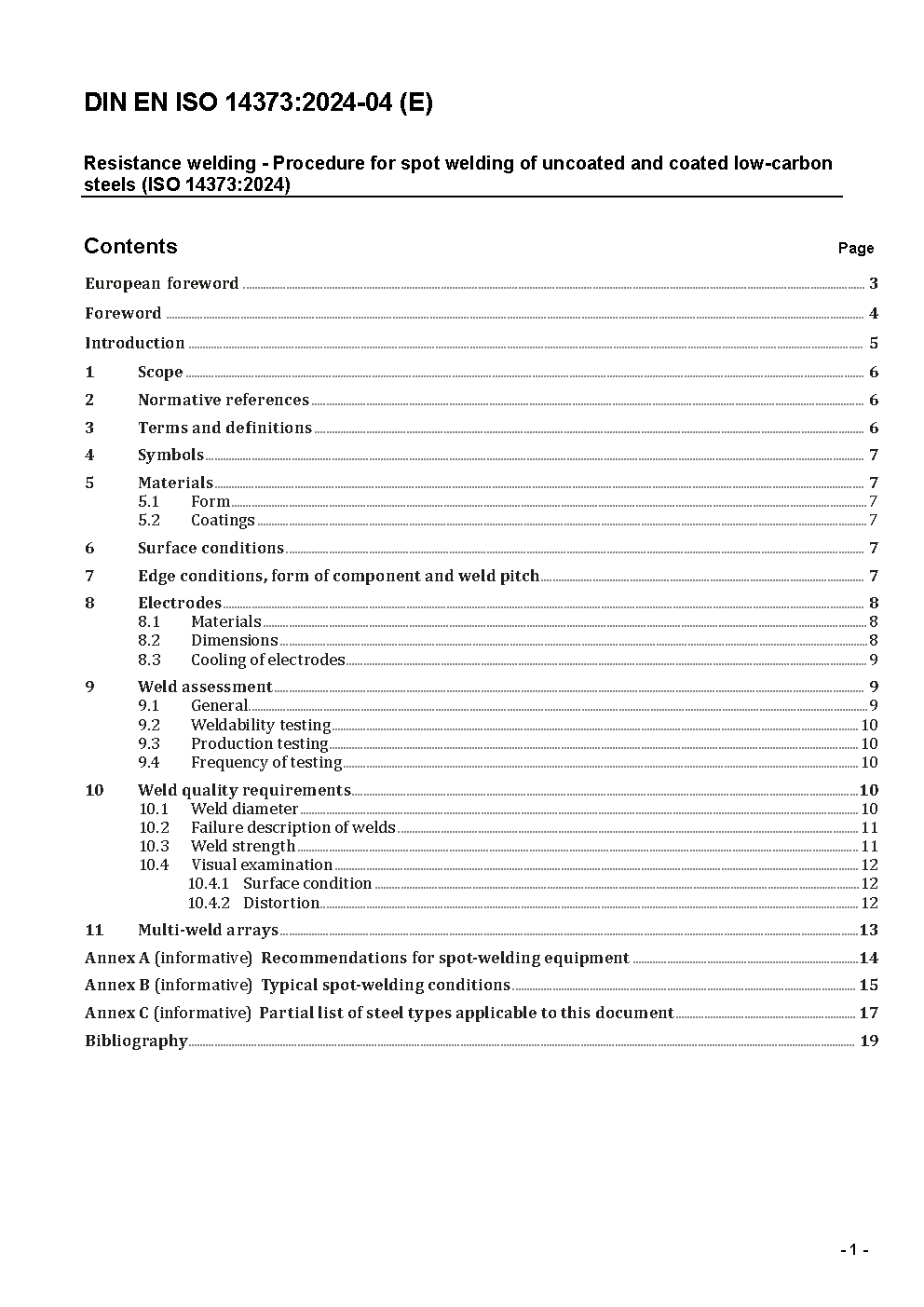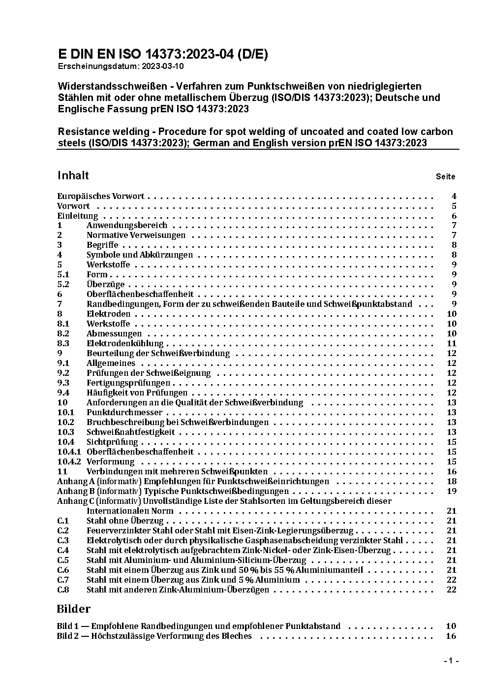 Resistance welding - Procedure for spot welding of uncoated and coated low carbon steels (ISO/DIS 14373:2013); German version prEN ISO 14373:2013
