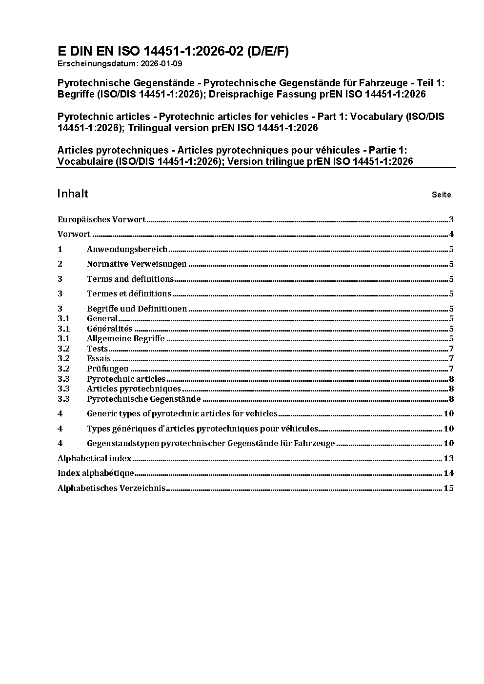 Pyrotechnische Gegenstände - Pyrotechnische Gegenstände für Fahrzeuge - Teil 1: Begriffe (ISO/DIS 14451-1:2011); Deutsche Fassung prEN ISO 14451-1:2011