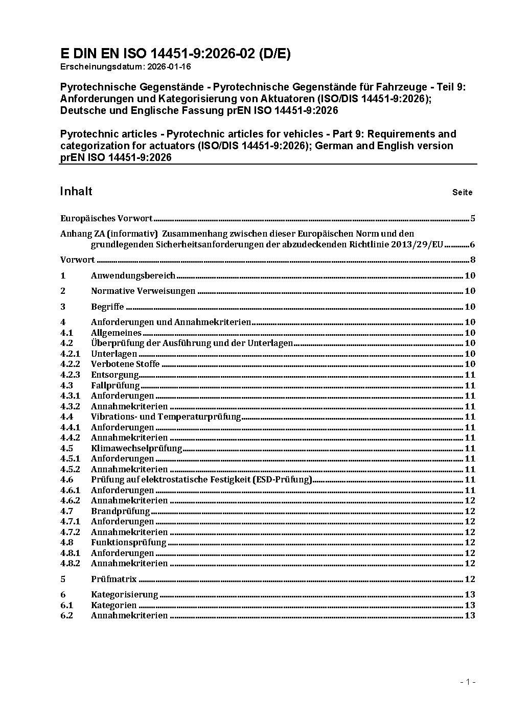 Pyrotechnische Gegenstände - Pyrotechnische Gegenstände für Fahrzeuge - Teil 9: Anforderungen an Aktuatoren (ISO/DIS 14451-9:2011); Deutsche Fassung prEN ISO 14451-9:2011