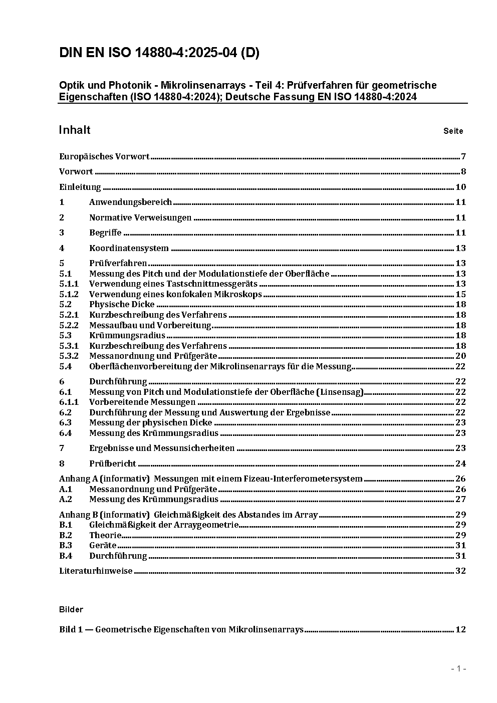 Optics and photonics - Microlens arrays - Part 4: Test methods for geometrical properties (ISO 14880-4:2006); German version EN ISO 14880-4:2006