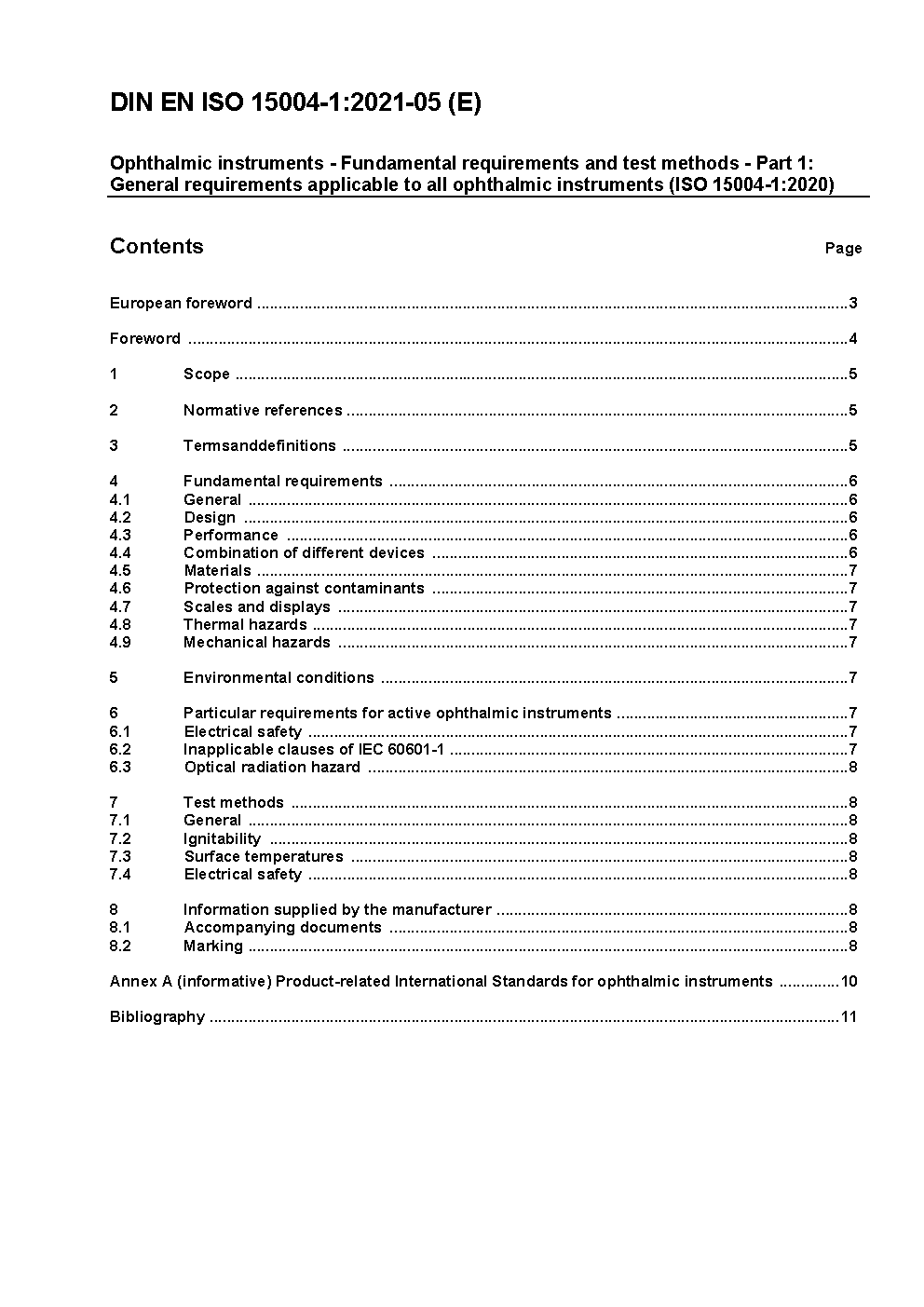 Ophthalmic instruments - Fundamental requirements and test methods - Part 1: General requirements applicable to all ophthalmic instruments (ISO 15004-1:2006); German version EN ISO 15004-1:2009.
