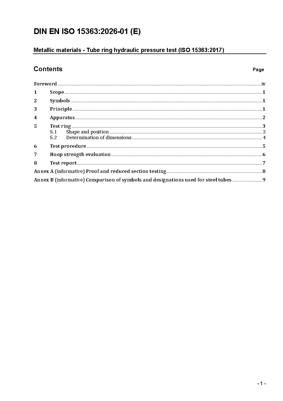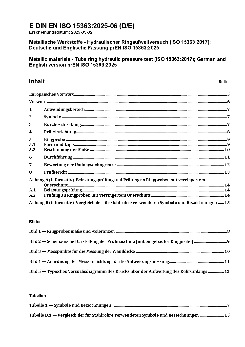 Metallic materials - Tube ring hydraulic pressure test (ISO 15363:2017); German and English version prEN ISO 15363:2025
