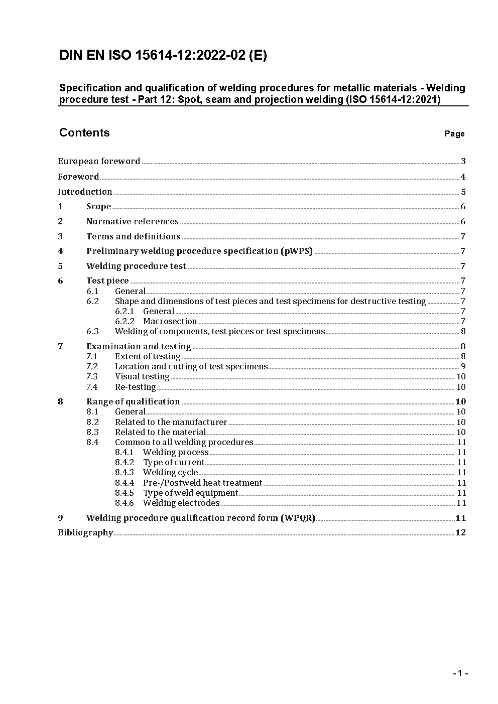 Specification and approval of welding procedures for metallic materials - Welding procedure test - Part 12: Spot, seam and projection welding (ISO/DIS 15614-12:2000); German version prEN ISO 15614-12:2000