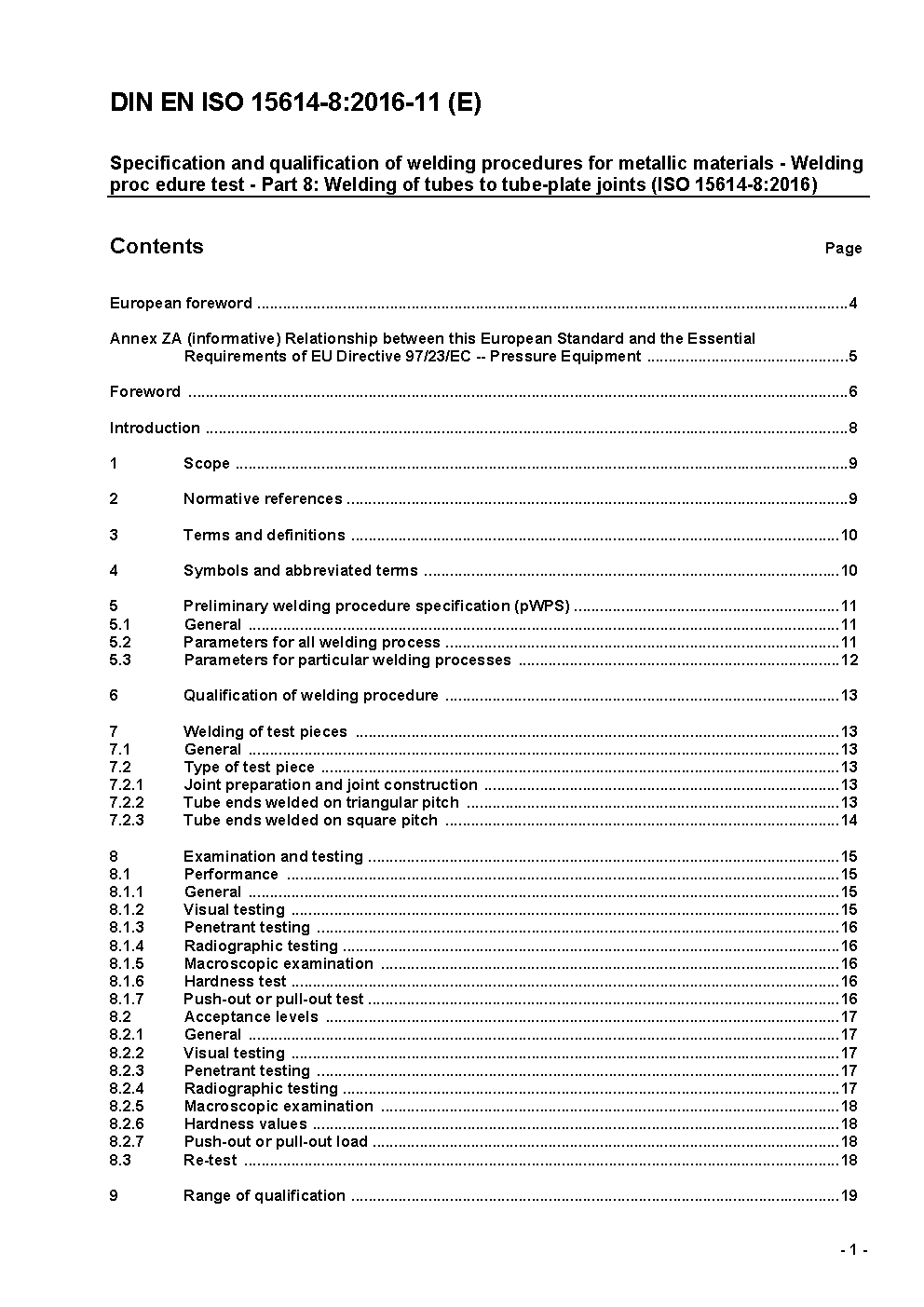 Specification and qualification of welding procedures for metallic materials - Welding procedure test - Part 8: Welding of tubes to tube-plate joints (ISO 15614-8:2002); German version EN ISO 15614-8:2002