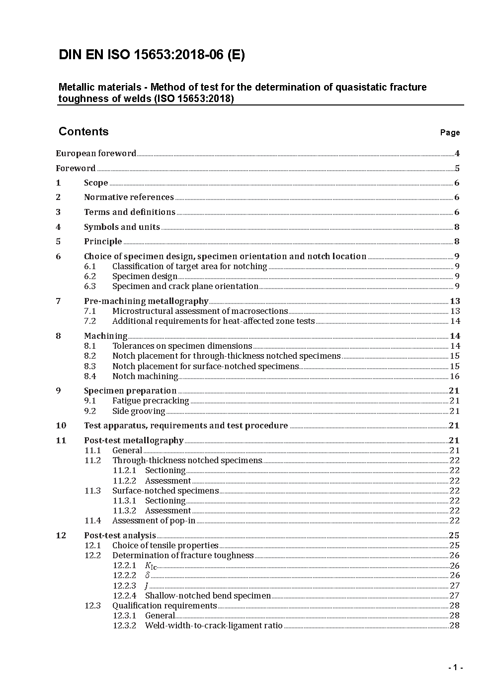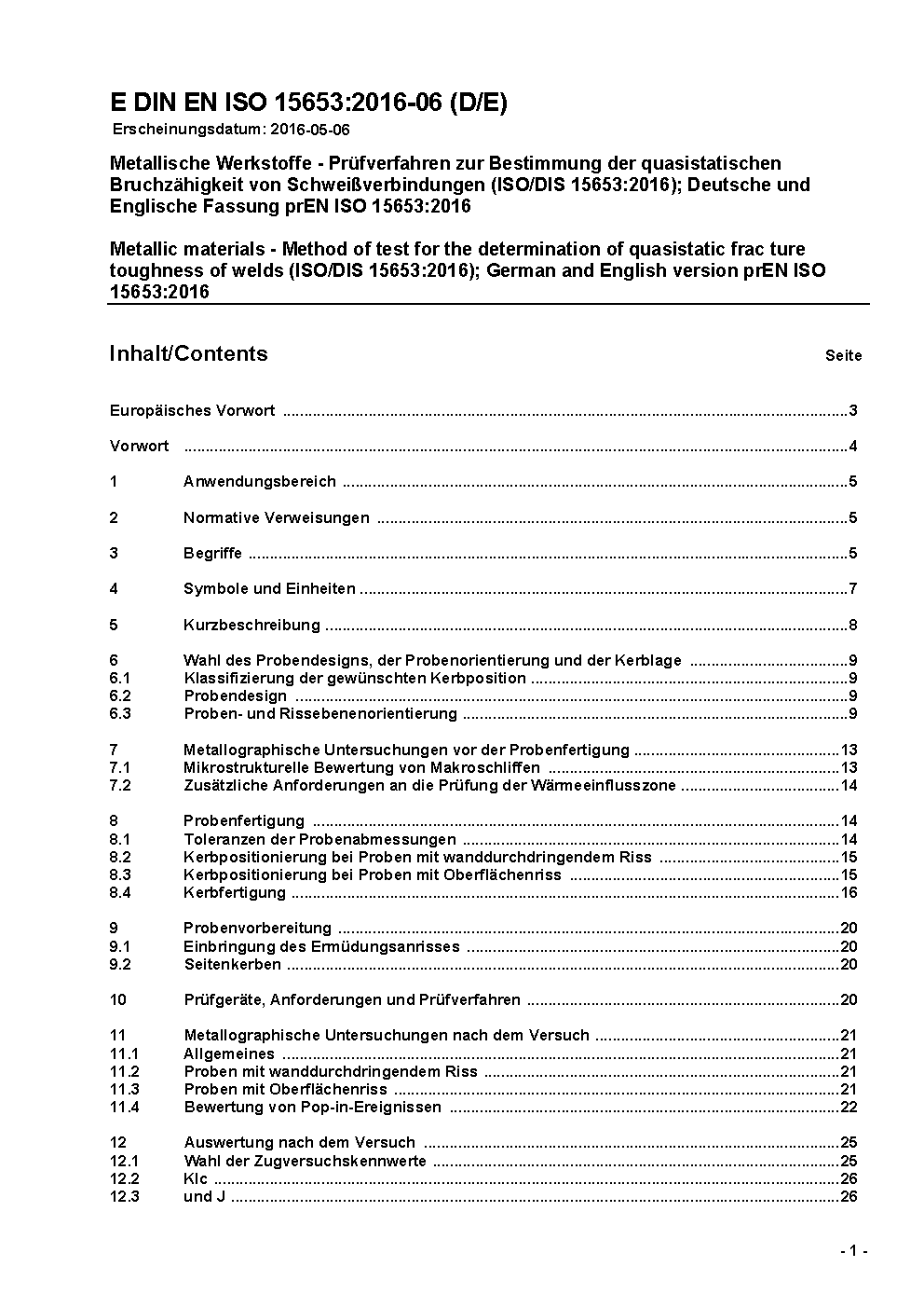 Metallic materials - Method of test for the determination of quasistatic fracture toughness of welds (ISO/DIS 15653:2016); German and English version prEN ISO 15653:2016