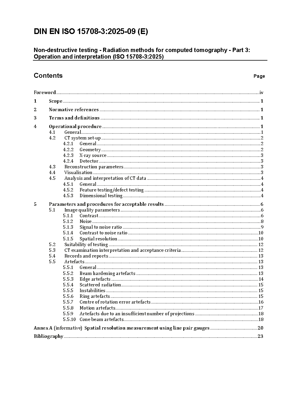 This document presents an outline of the operation of a computed tomography (CT) system and theinterpretation of results with the aim of providing the operator with technical information to enable the selection of suitable parameters.It is applicable to industrial imaging (i.e. non-medical applications) and gives a consistent set of CT performance parameter definitions, including how those performance parameters relate to CT system specifications.This document deals with computed axial tomography and excludes other types of tomography such astranslational tomography and tomosynthesis.