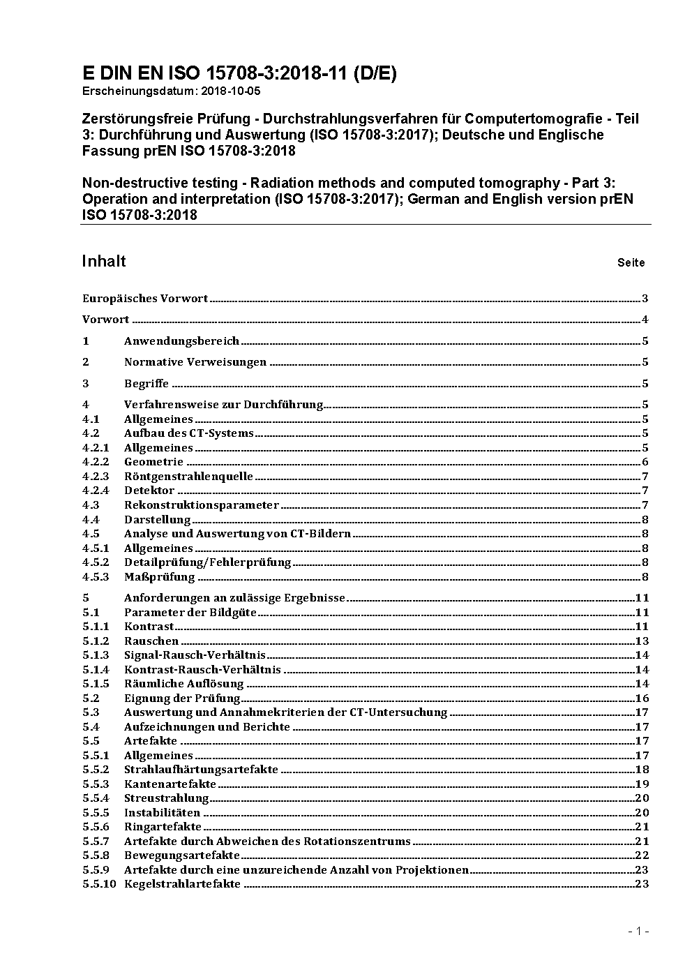 Non-destructive testing - Radiation methods and computed tomography - Part 3: Operation and interpretation (ISO 15708-3:2017); German and English version prEN ISO 15708-3:2018