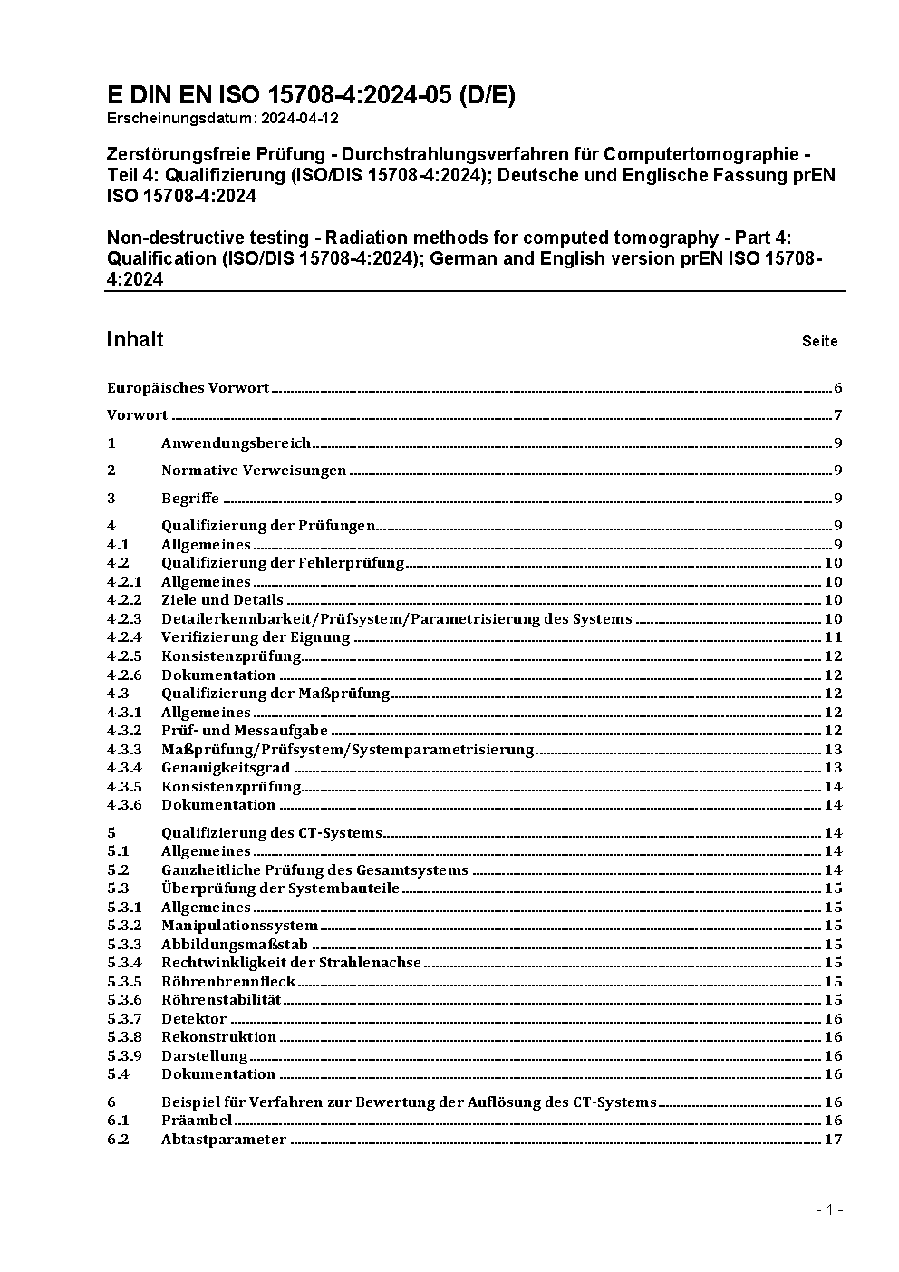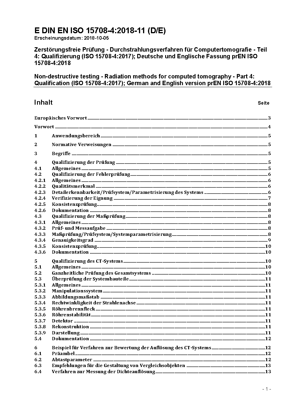 Non-destructive testing - Radiation methods for computed tomography - Part 4: Qualification (ISO 15708-4:2017); German and English version prEN ISO 15708-4:2018