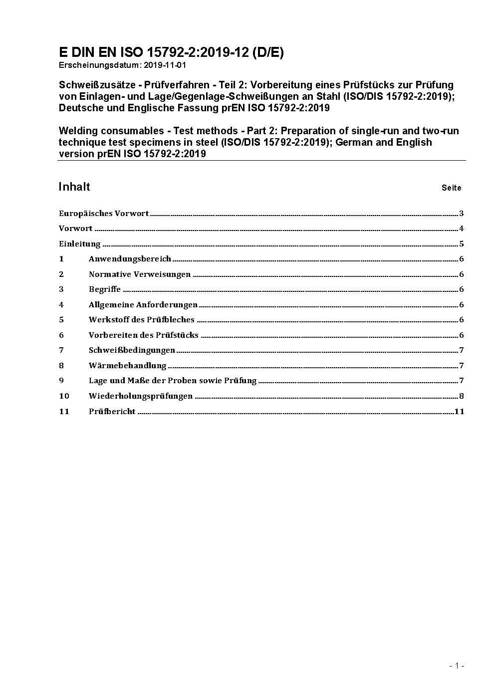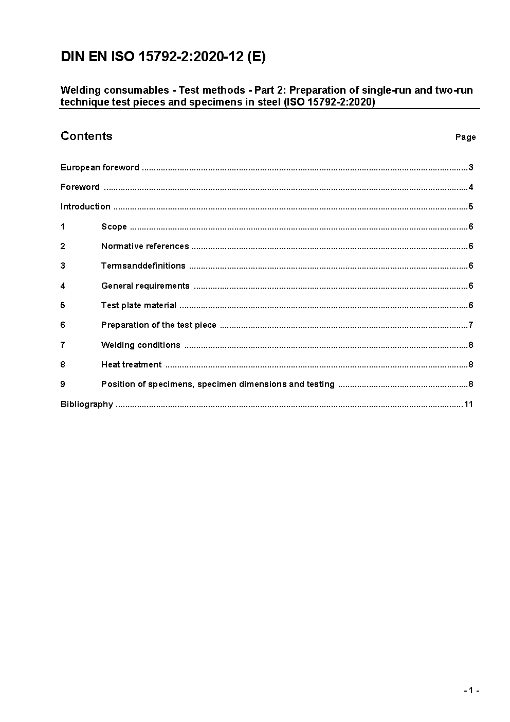 This part of EN ISO 15792 specifies the preparation of butt weld test pieces and specimens. The purpose is to define the test methods in order to determine strength and impact strength of the welded joint when testing welding consumables with single-run and two-run technique, not suitable for electro-slag or electro-gas welding. This part of EN ISO 15792 is applicable to welding consumables for arc welding of steel.