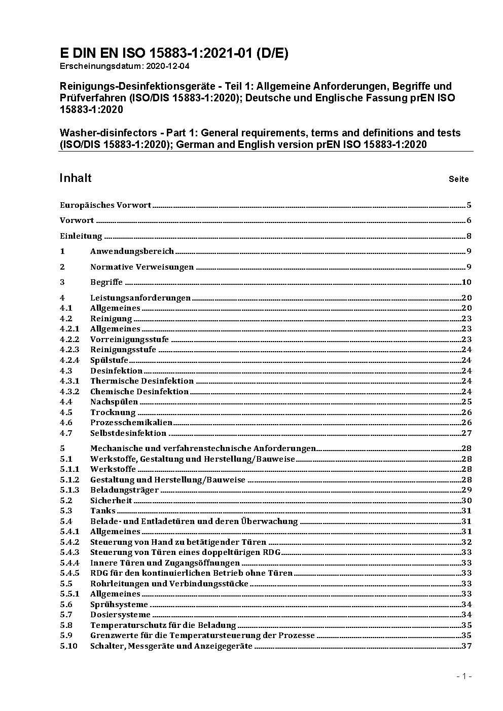 Washer-disinfectors - Part 1: General requirements, terms and definitions and tests (ISO 15883-1:2006 + Amd 1:2014); German version EN ISO 15883-1:2009 + A1:2014