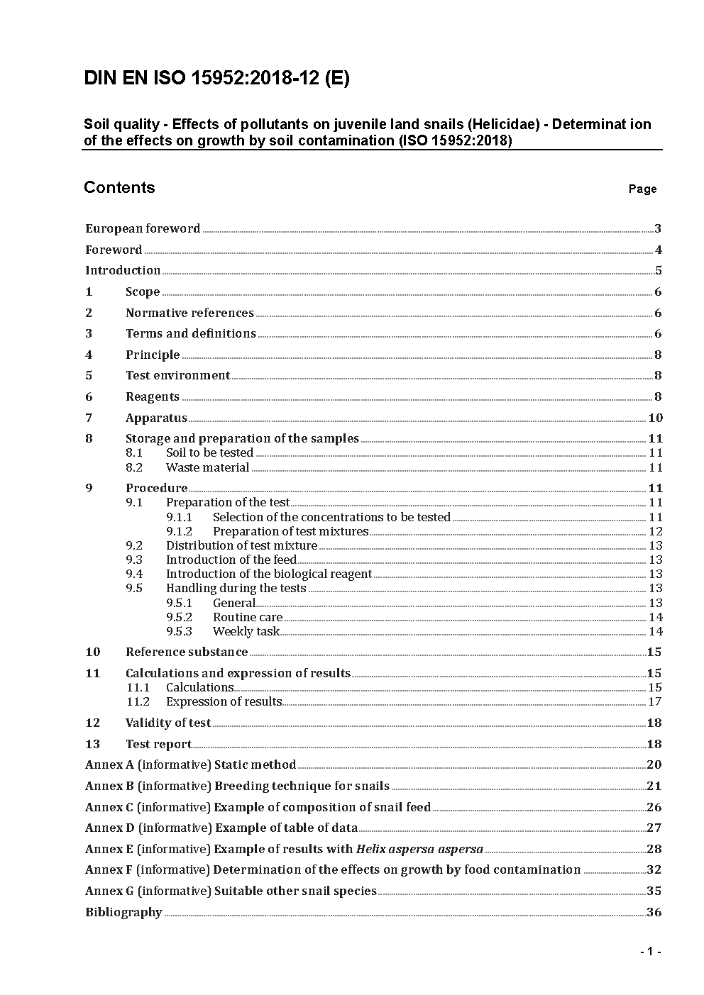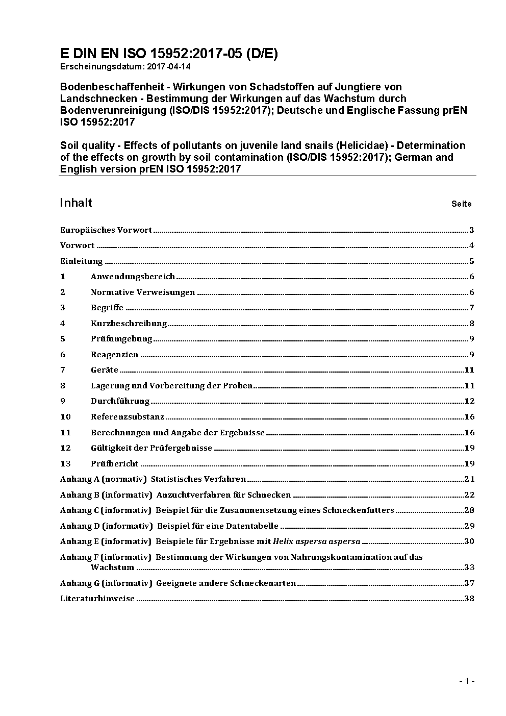 Soil quality - Effects of pollutants on juvenile land snails (Helicidae) - Determination of the effects on growth by soil contamination (ISO/DIS 15952:2017); German and English version prEN ISO 15952:2017