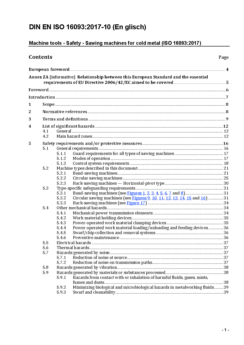 Machine tools - Safety - Sawing machines for cold metal (ISO 16093:2017); German version EN ISO 16093:2017