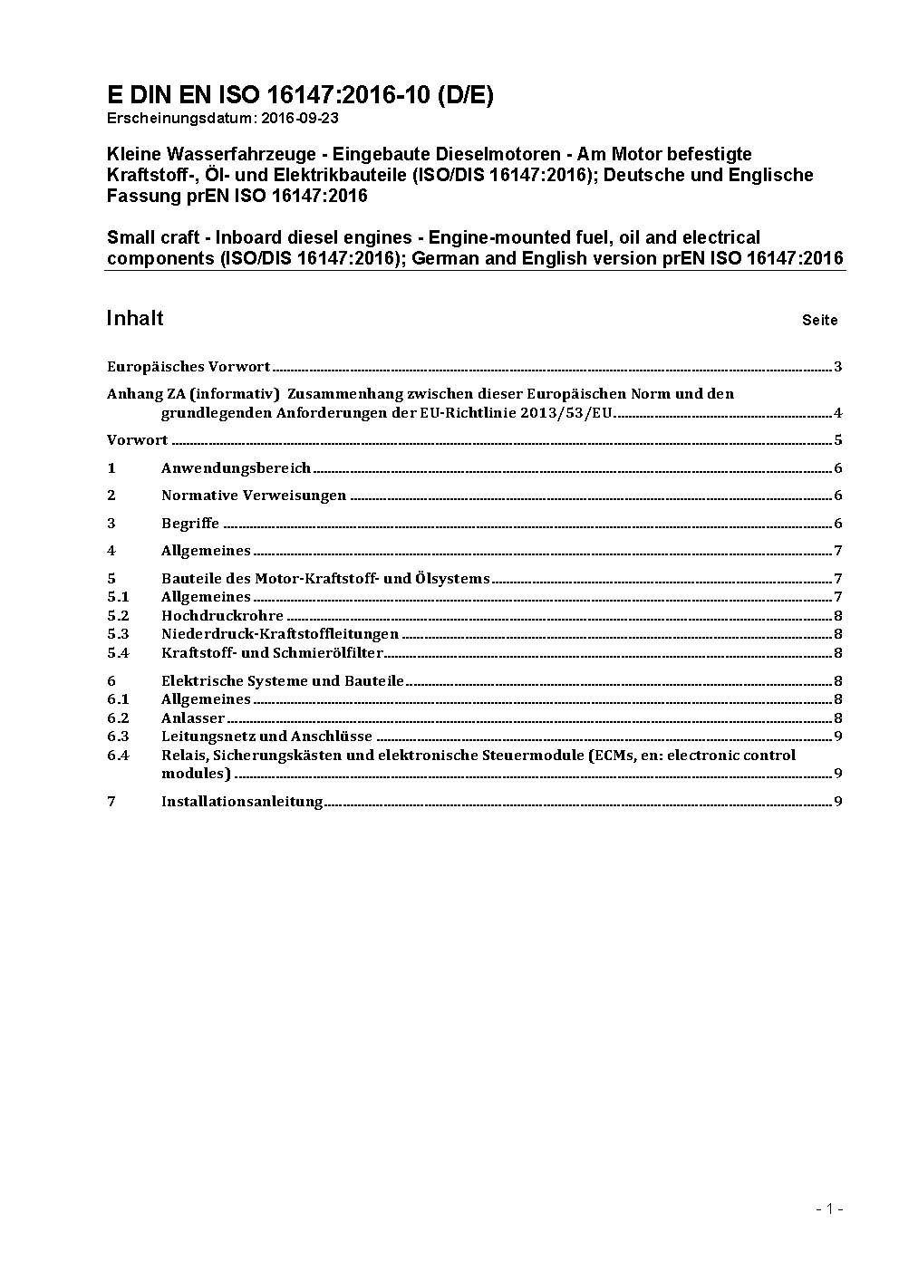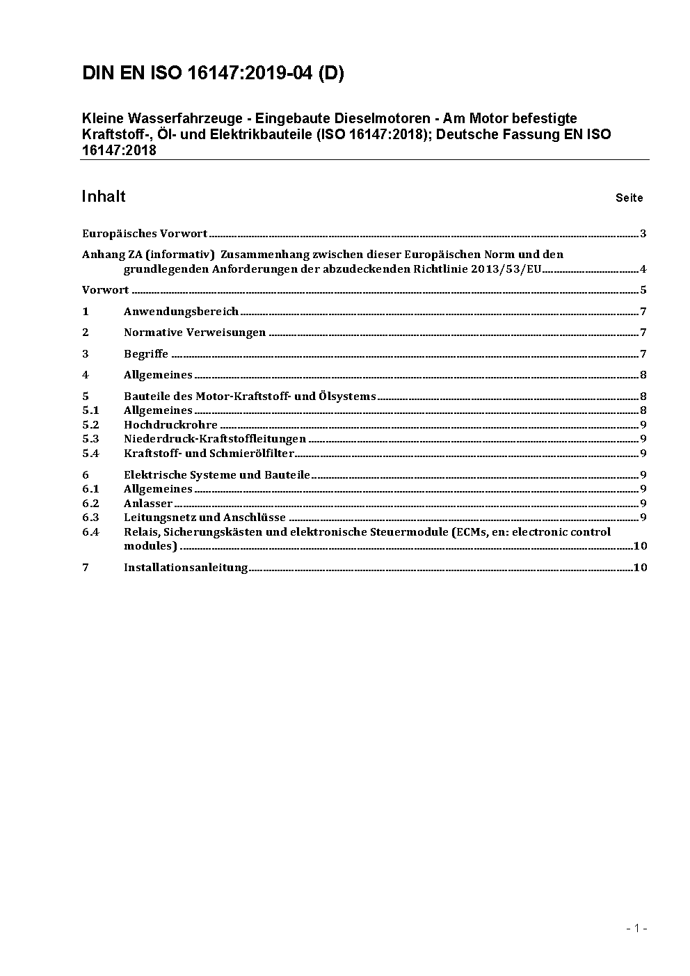 Small craft - Inboard diesel engines - Engine-mounted fuel, oil and electrical components (ISO 16147:2018); German version EN ISO 16147:2018
