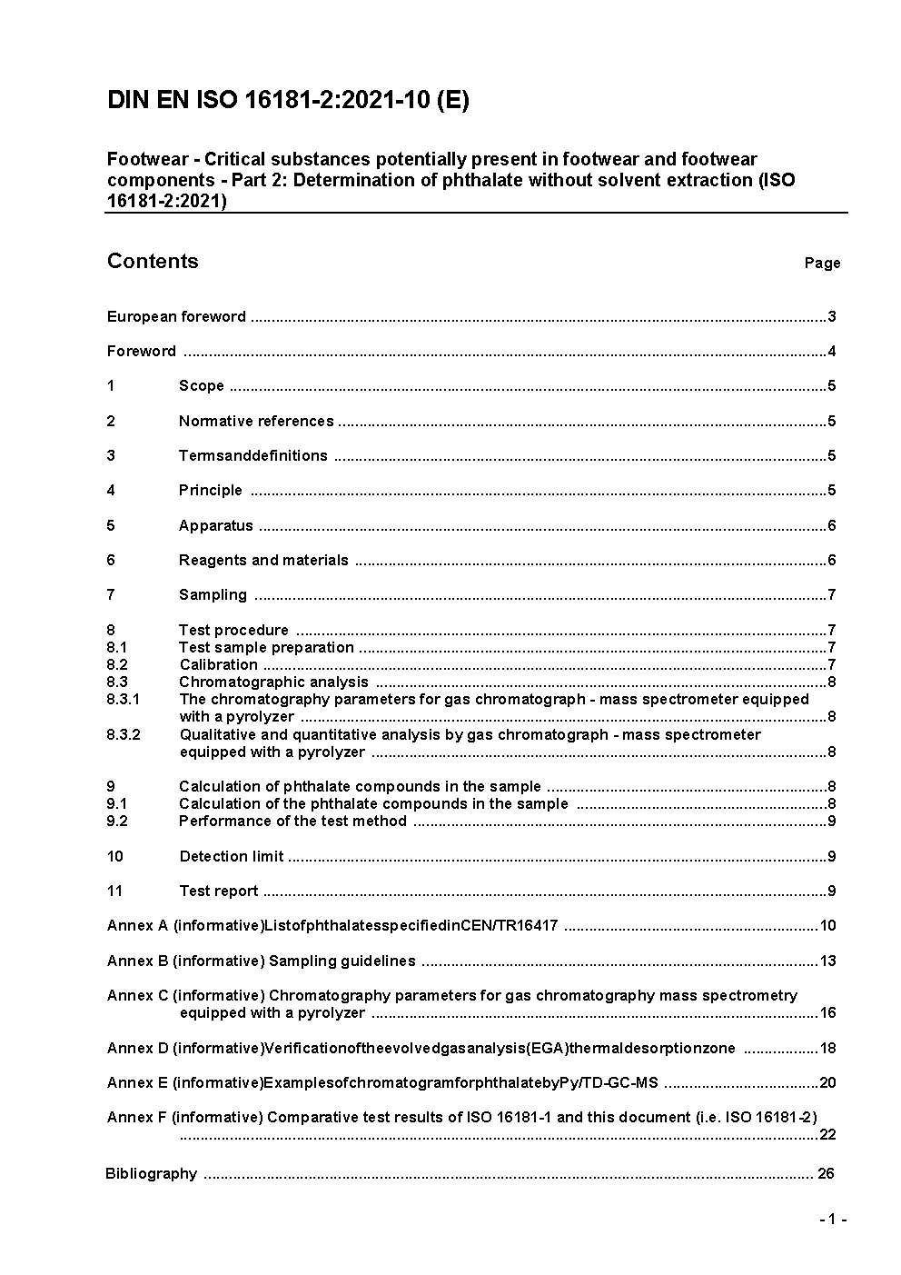 Footwear - Critical substances potentially present in footwear and footwear components - Part 2: Determination of phthalate without solvent extraction (ISO/DIS 16181-2:2019); German and English version prEN ISO 16181-2:2019