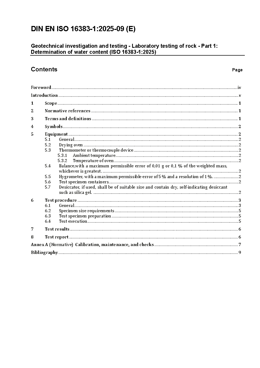 Geotechnical investigation and testing - Laboratory testing of rock - Part 1: Determination of water content (ISO 16383-1:2025); German version EN ISO 16383-1:2025