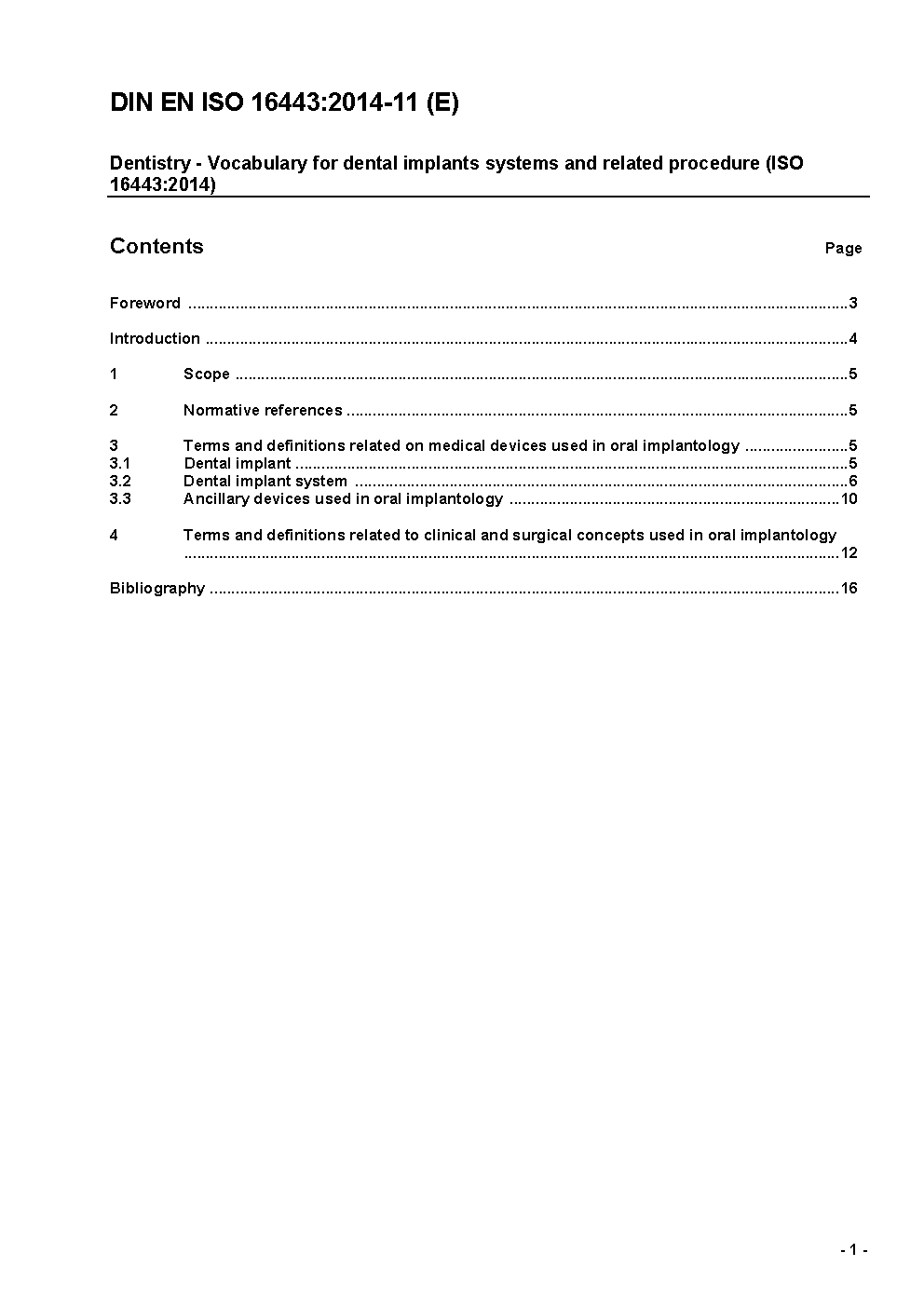 This document specifies terms and definitions for dental implants, instruments and accessories, and the most commonly used clinical terms in the field of dental implantology.