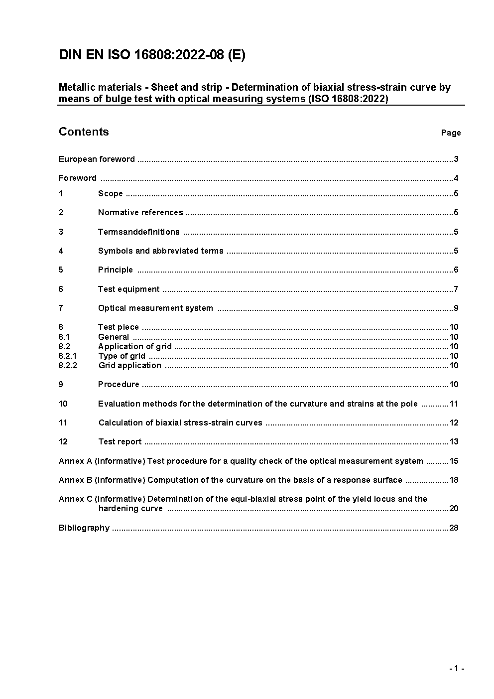 This International Standard specifies a method for determination of the biaxial stress strain curve of metallic sheets having a thickness below 3 mm in pure stretch forming without significant friction influence. In comparison with tensile test results, higher strain values can be achieved.