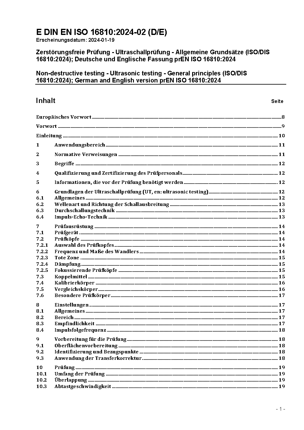 Non-destructive testing - Ultrasonic testing - General principles (ISO 16810:2012); German version FprEN ISO 16810:2013