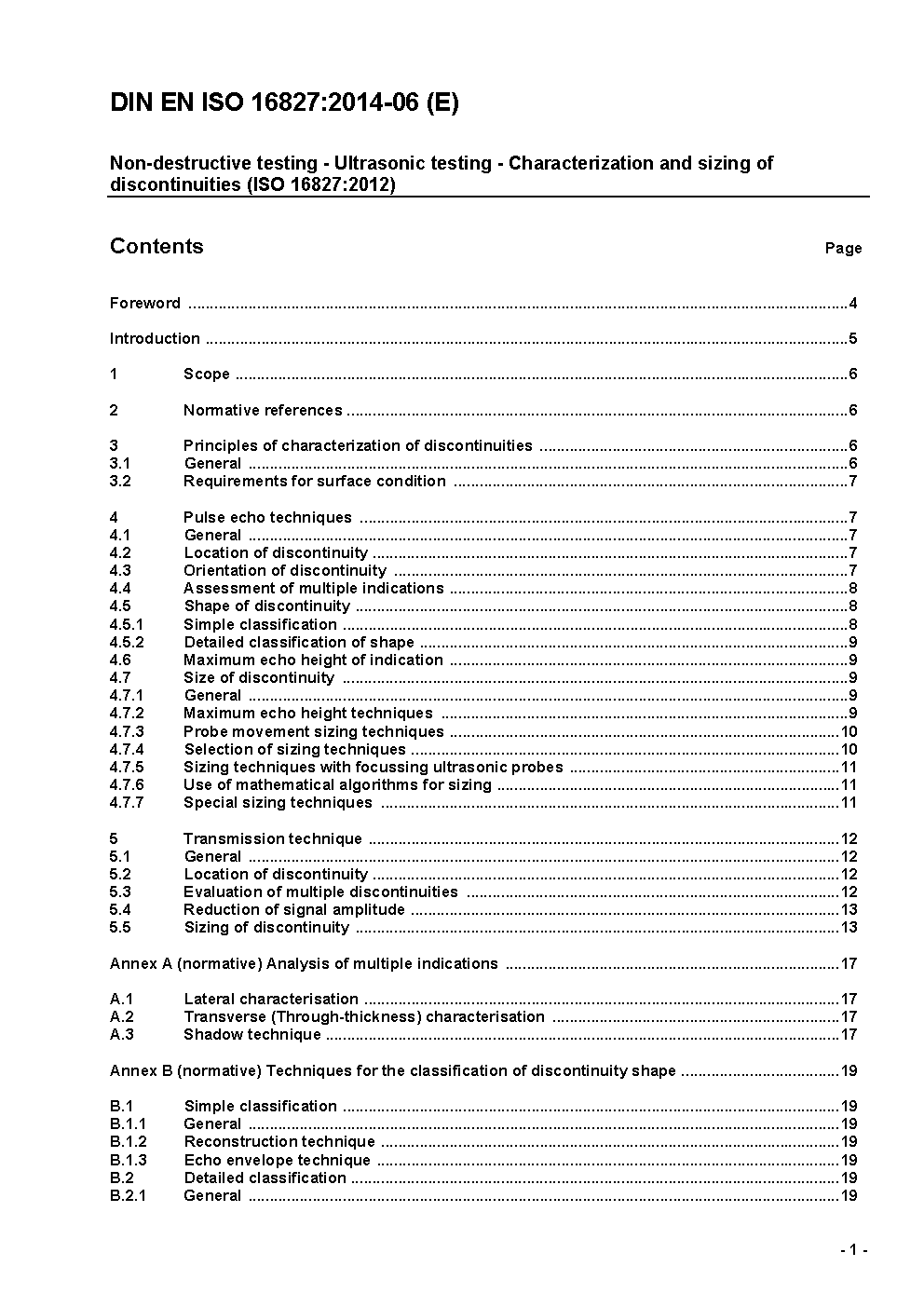 ISO 16827:2012 specifies the general principles and techniques for the characterization and sizing of previously detected discontinuities in order to ensure their evaluation against applicable acceptance criteria. It is applicable, in general terms, to discontinuities in those materials and applications covered by ISO 16810.