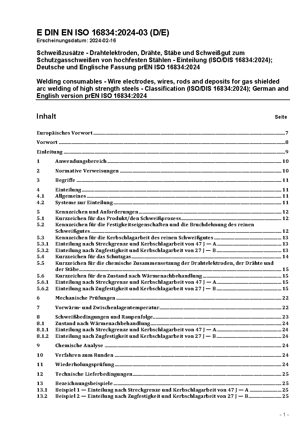 Welding consumables - Wire electrodes, wires, rods and deposits for gas shielded arc welding of high strength steels - Classification (ISO 16834:2012); German version EN ISO 16834:2012