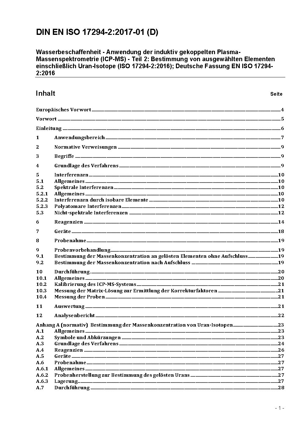 Water quality - Application of inductively coupled plasma mass spectrometry (ICP-MS) - Part 2: Determination of selected elements including uranium isotopes (ISO 17294-2:2016); German version EN ISO 17294-2:2016