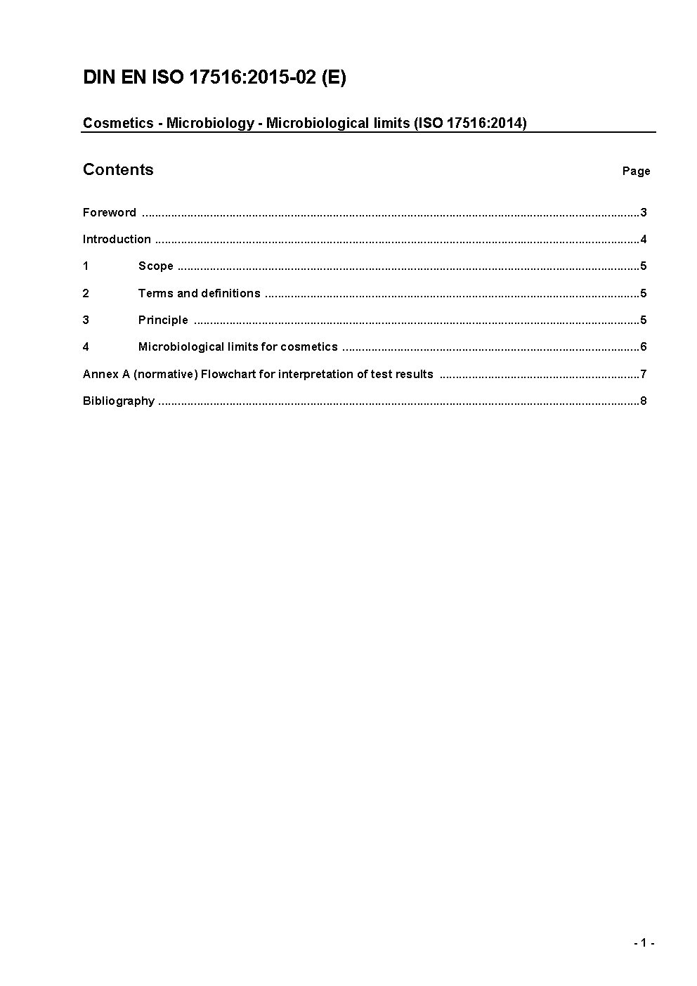 Cosmetics - Microbiology - Microbiological limits (ISO 17516:2014); German version EN ISO 17516:2014