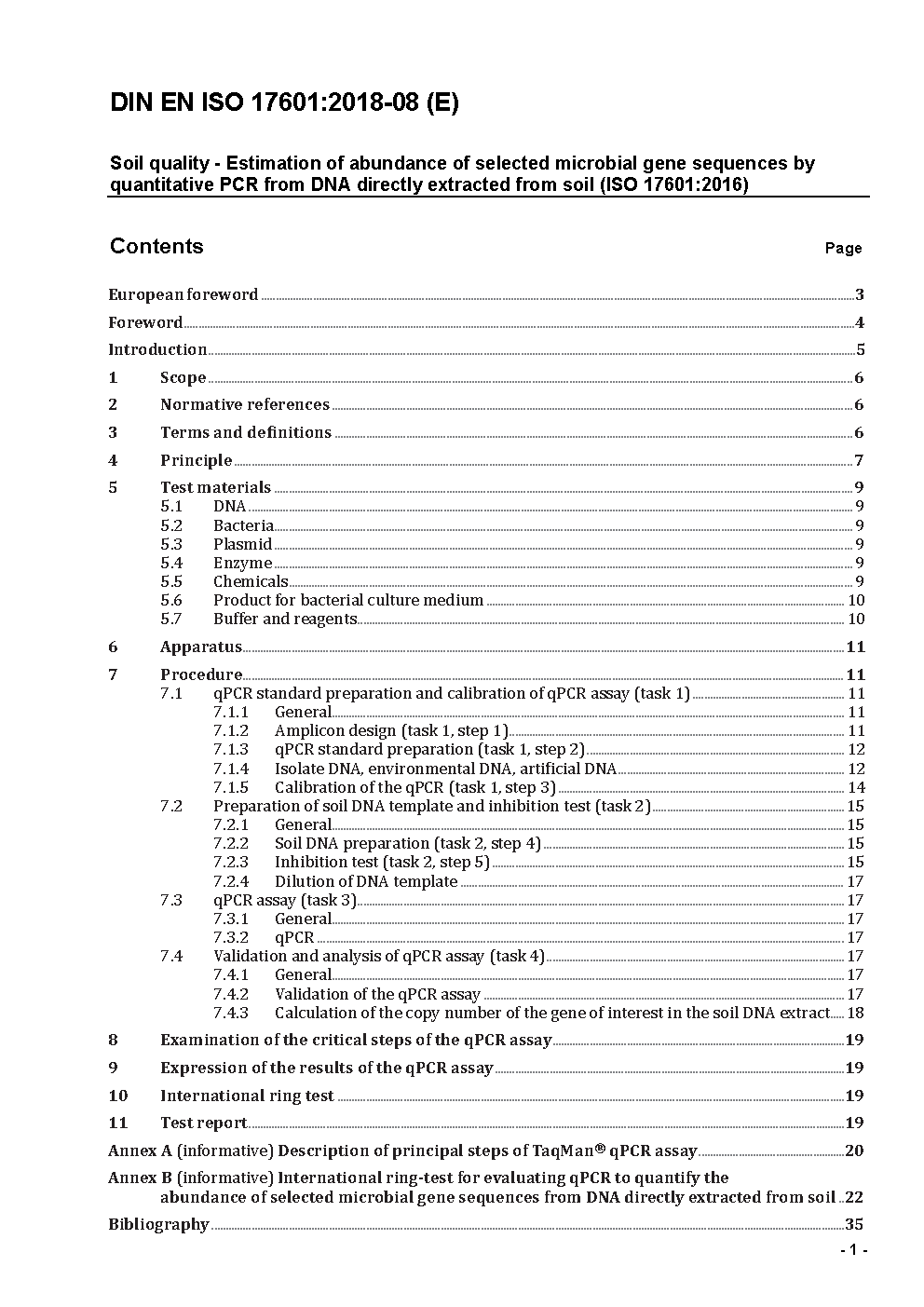 Soil quality - Estimation of abundance of selected microbial gene sequences by quantitative PCR from DNA directly extracted from soil (ISO/DIS 17601:2024); German and English version prEN ISO 17601:2024