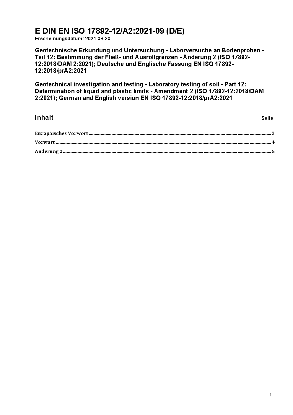 Prévu pour remplacer DIN ISO/TS 17892-12 (2005-01).