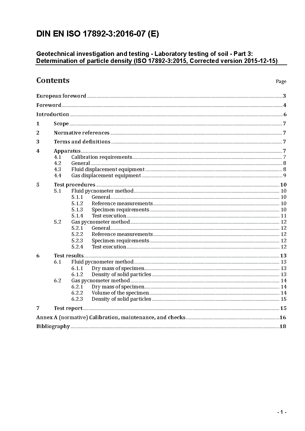 Geotechnical investigation and testing - Laboratory testing of soil - Part 3: Determination of particle density (ISO 17892-3:2015, Corrected version 2015-12-15); German version EN ISO 17892-3:2015