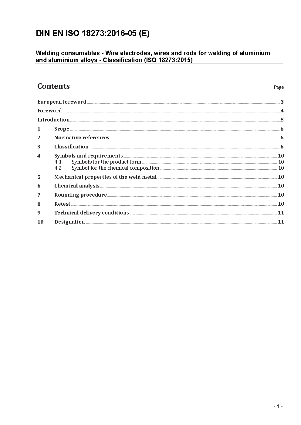 Welding consumables - Wire electrodes, wires and rods for welding of aluminium and aluminium alloys - Classification (ISO 18273:2015); German version EN ISO 18273:2015