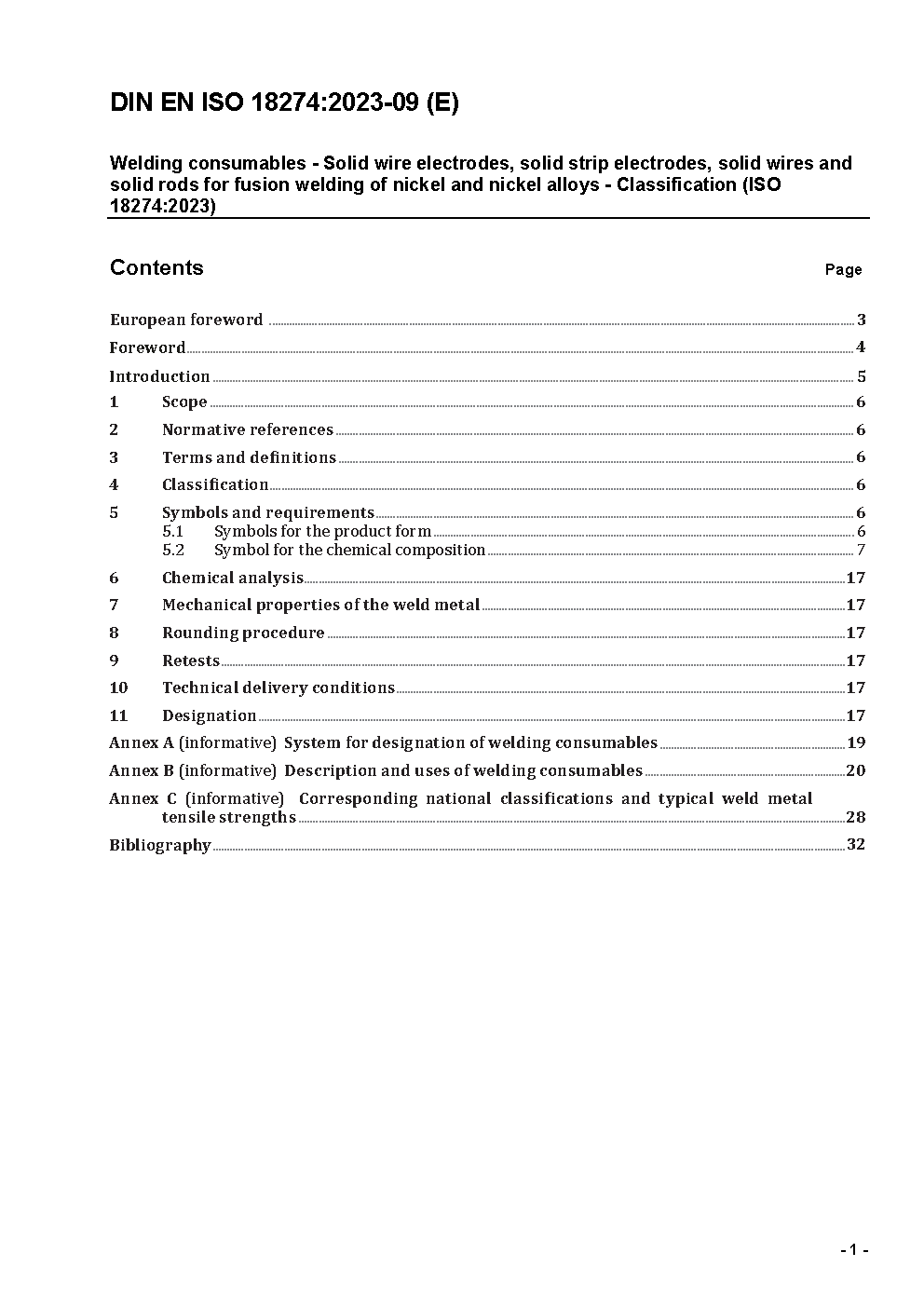Welding consumables - Solid wires, strips and rods for fusion welding of nickel and nickel alloys - Classification (ISO 18274:2004); German version EN ISO 18274:2004
