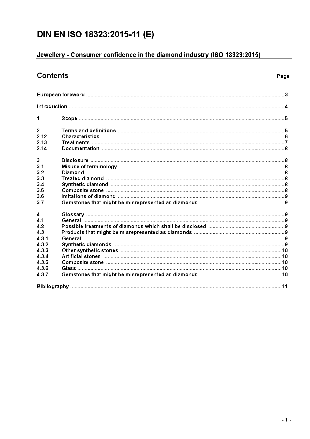 This European Standard specifies a set of permitted descriptors for the diamond industry and is specifically designed to be understood by the consumer. The Standard also includes a series of definitions which aim to provide further clarity for traders and maintain consumer confidence in the diamond industry as a whole. The Standard will cover the nomenclature to be used by those involved in the buying and selling of diamonds, treated diamonds, synthetic diamonds, composite diamonds and imitations of diamonds.