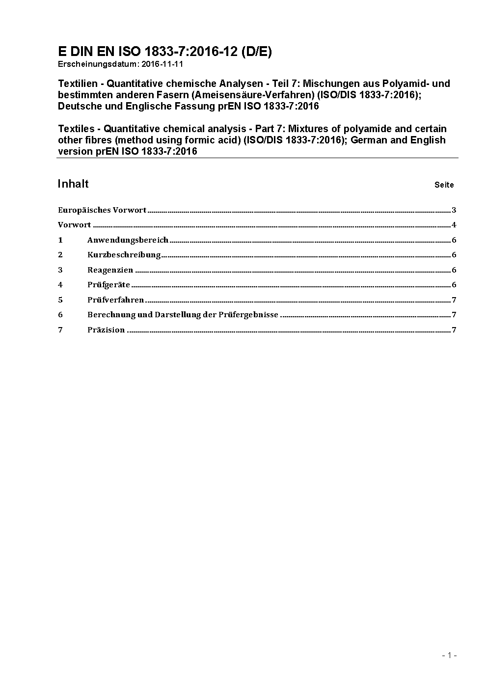 Prévu pour remplacer DIN EN ISO 1833-7 (2011-01).