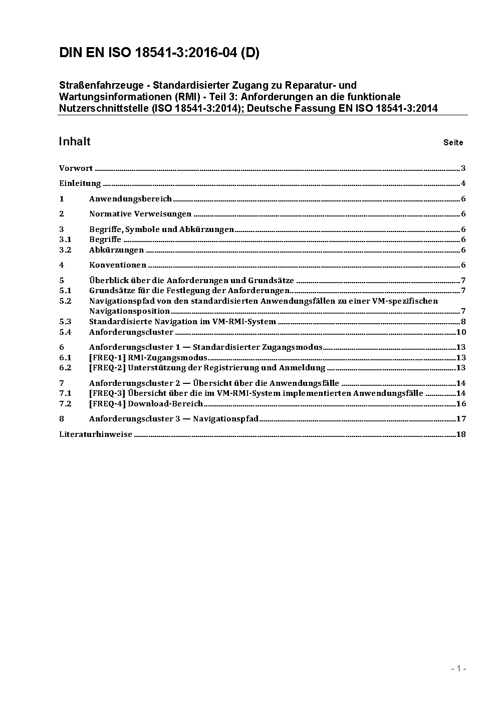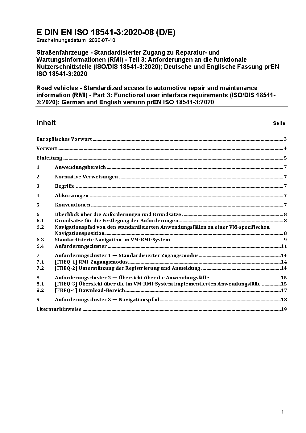 Road vehicles - Standardized access to automotive repair and maintenance information (RMI) - Part 3: Functional user interface requirements (ISO/DIS 18541-3:2012); German version prEN ISO 18541-3:2012