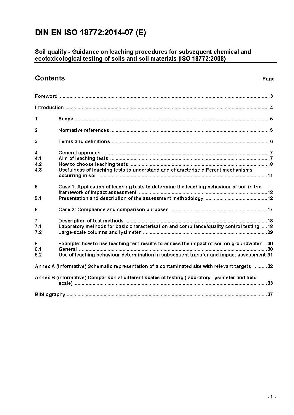 ISO 18772:2008 provides guidance on the appropriate use of leaching tests on soil and soil materials, in order to determine the leaching behaviour in the framework of impact assessment, or for compliance and comparison purposes, including information on the following: the choice of leaching tests, depending on the nature of the problem to be solved and the specific features of the different tests; the interpretation of the test results; the limitations of the tests. In this respect, it is important to keep in mind that leaching tests do not aim to simulate real field conditions, but are designed to address the contact between a solid and a liquid phase for different purposes that are described in ISO 18772:2008.ISO 18772:2008 only concerns natural, contaminated and agricultural soils and soil materials. Questions relating to the leaching of wastes are not covered by ISO 18772:2008. It also does not cover the subject of bioavailability of contaminants to living organisms, which is covered by ISO 17402.