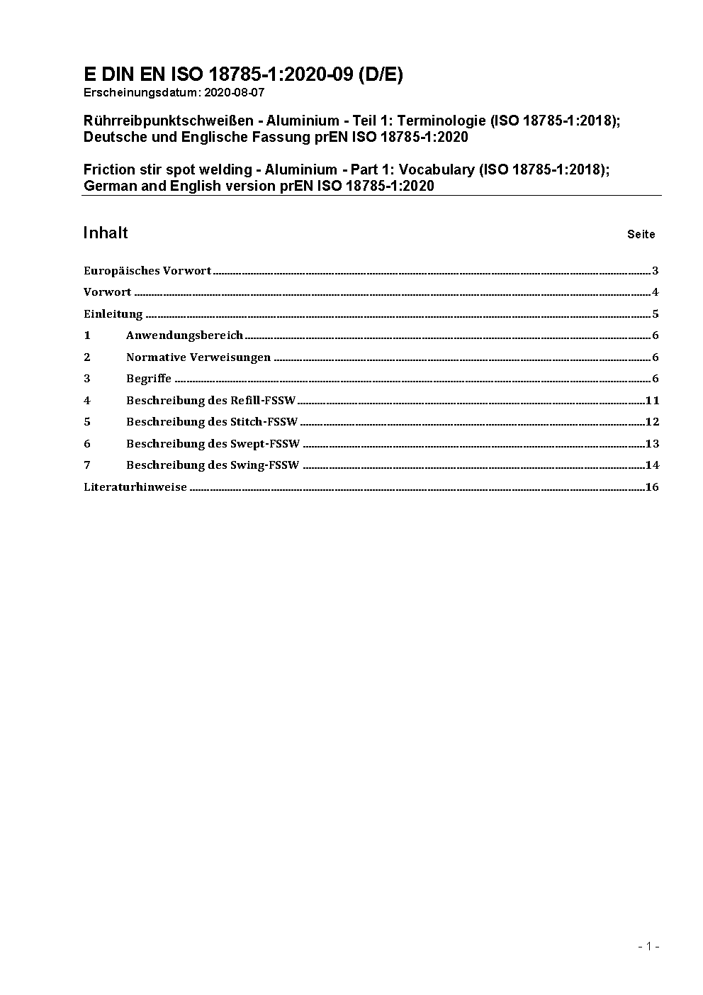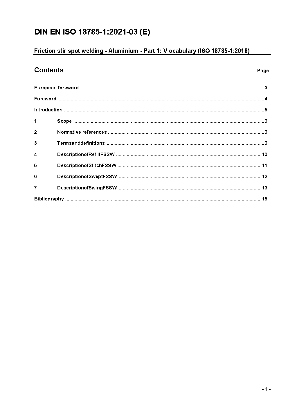 Friction stir spot welding - Aluminium - Part 1: Vocabulary (ISO 18785-1:2018); German version EN ISO 18785-1:2021