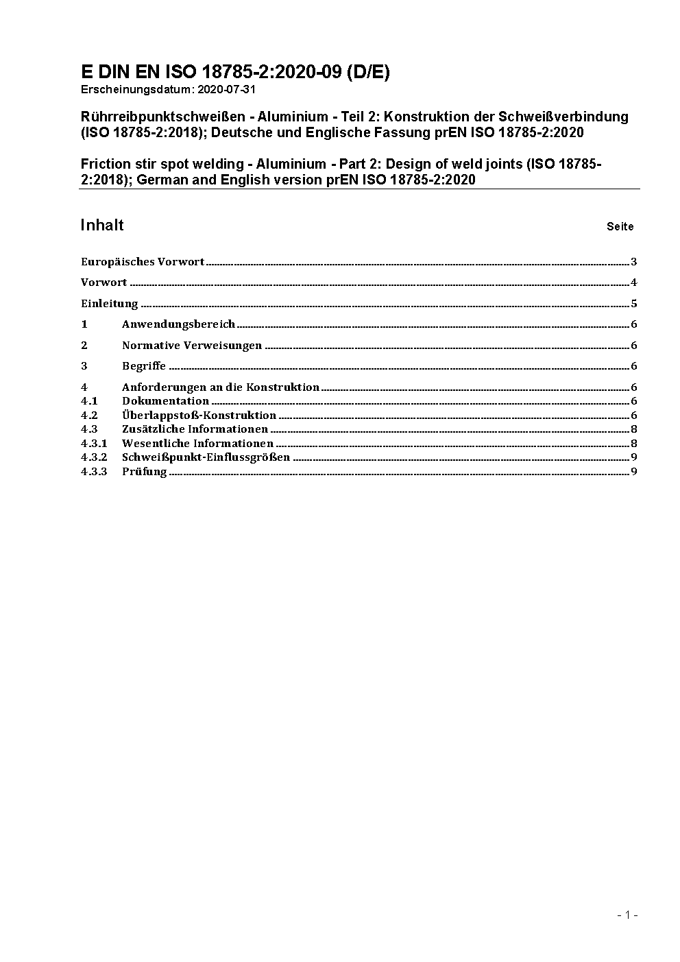 Rührreibpunktschweißen - Aluminium - Teil 2: Konstruktion der Schweißverbindung (ISO 18785-2:2018); Deutsche Fassung EN ISO 18785-2:2021