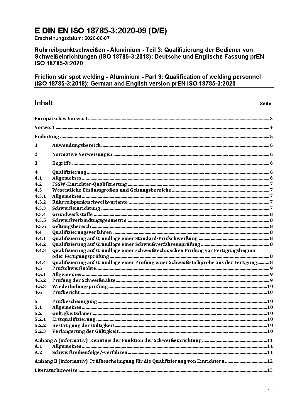 Friction stir spot welding - Aluminium - Part 3: Qualification of welding personnel (ISO 18785-3:2018); German and English version prEN ISO 18785-3:2020