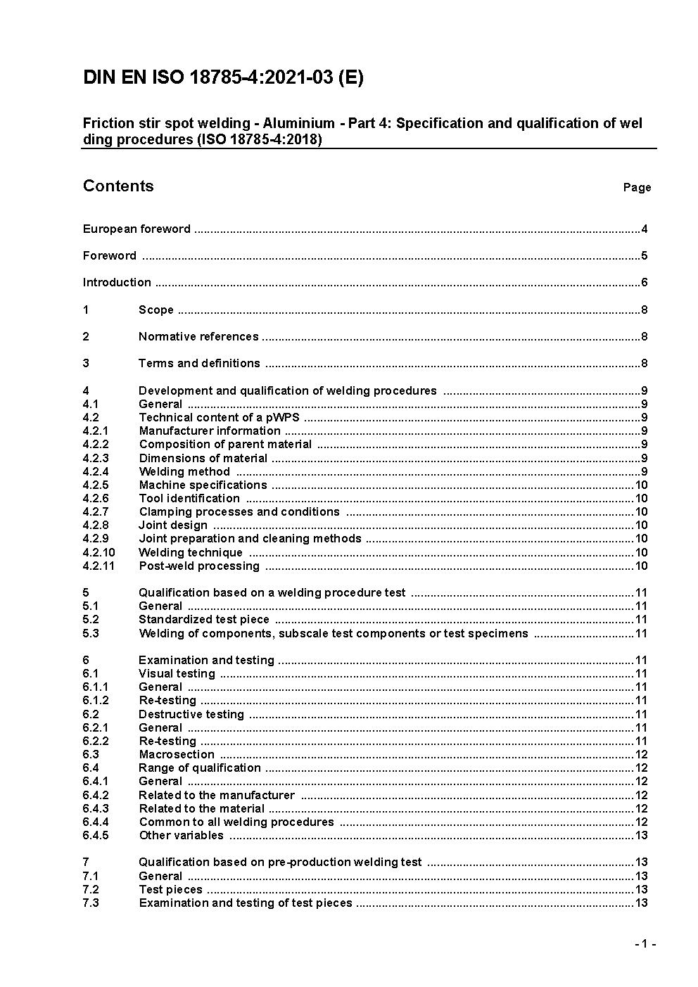Friction stir spot welding - Aluminium - Part 4: Specification and qualification of welding procedures (ISO 18785-4:2018); German version EN ISO 18785-4:2021