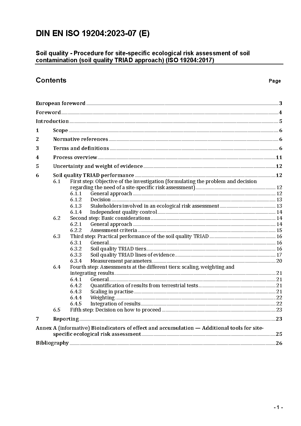 Soil quality - Procedure for site-specific ecological risk assessment of soil contamination (soil quality TRIAD approach) (ISO/DIS 19204:2026); German and English version prEN ISO 19204:2026