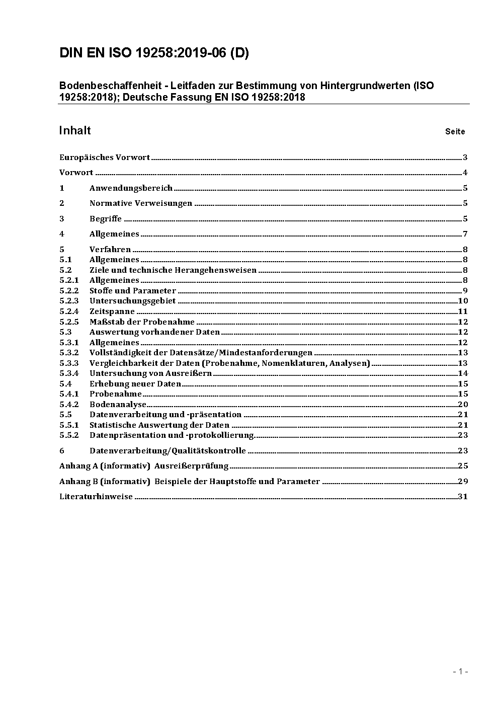 Soil quality - Guidance on the determination of background values (ISO 19258:2005); German version EN ISO 19258:2011