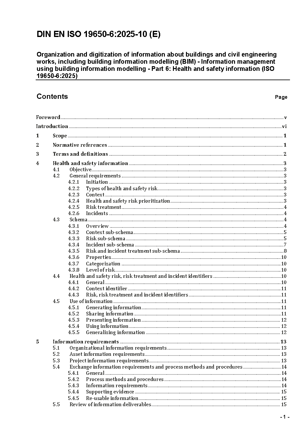 Organization and digitization of information about buildings and civil engineering works, including building information modelling (BIM) – Information management using building information modelling – Part 6: Health and safety information (ISO/DIS 19650-6:2023); German and English version prEN ISO19650-6:2023