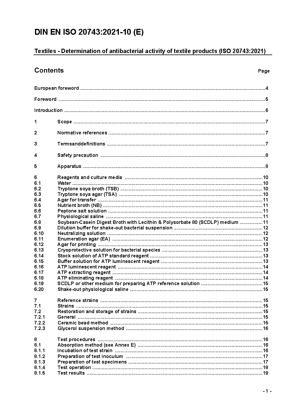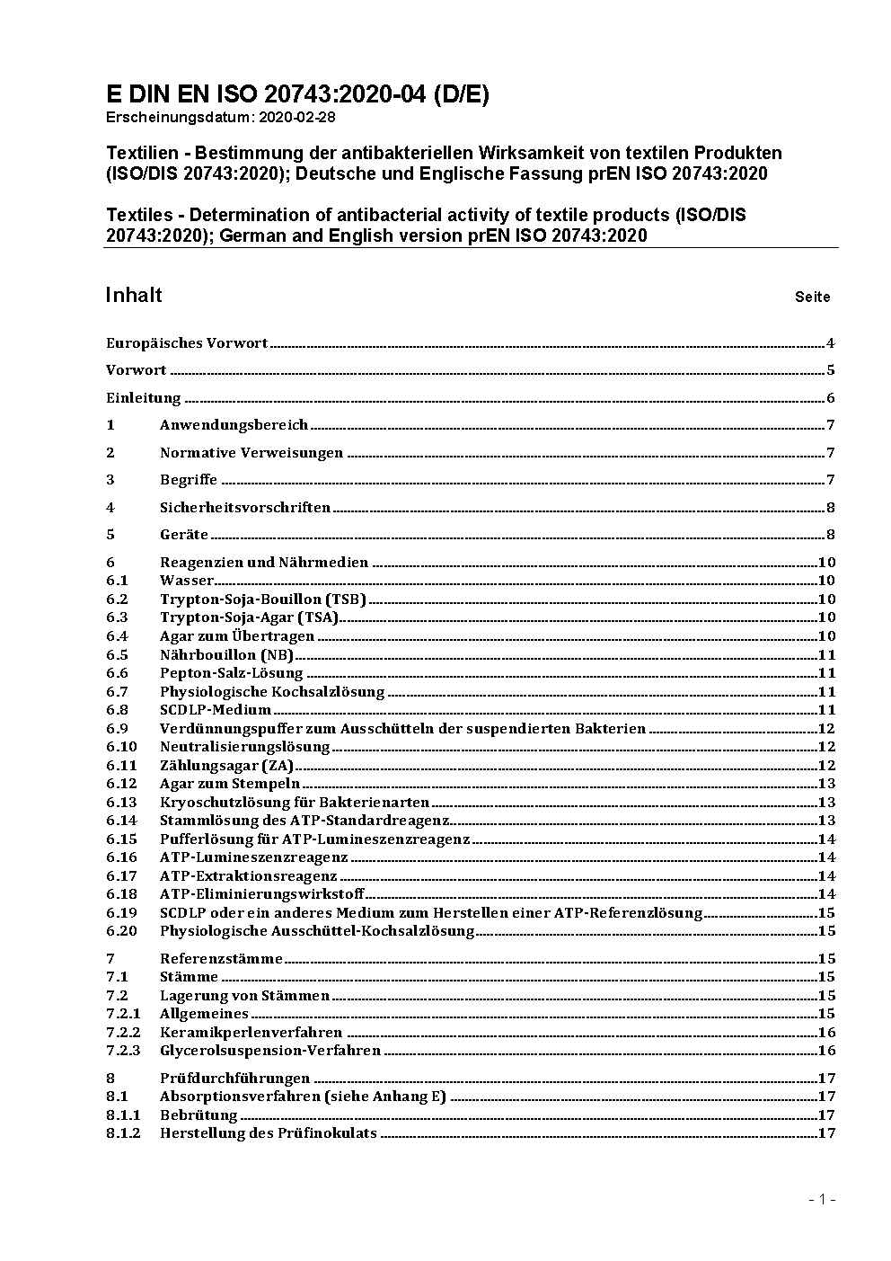 Textilien - Bestimmung der antibakteriellen Wirksamkeit von textilen Produkten (ISO/DIS 20743:2020); Deutsche und Englische Fassung prEN ISO 20743:2020